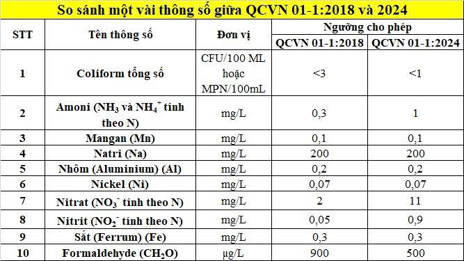So sánh vài chỉ số giữa QCVN 01-1:2028/BYT với QCVN 01-1:2024/BYT