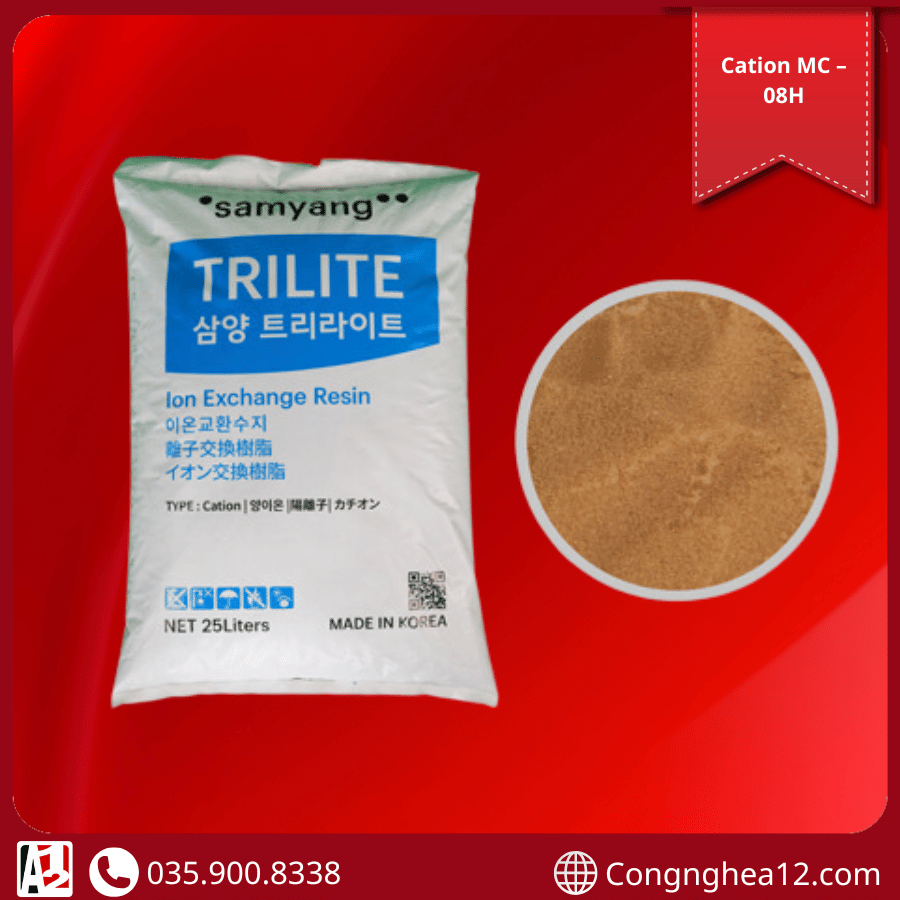Cation Hàn Quốc MC08 Size 0,6mm là hạt nhựa trao đổi cation axit mạnh có cấu trúc gel là hạt ở dạng H+. Hạt Nhựa Cation Trilite MC-08H là hạt nhựa copolymer có nguồn gốc từ Styren-divynylbenzene với nhóm chức axit sulfonic.