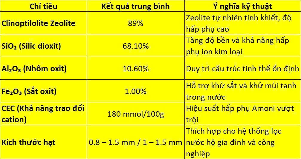 CEC (Khả năng trao đổi cation) 180 mmol/100g Hiệu suất hấp phụ Amoni vượt trội